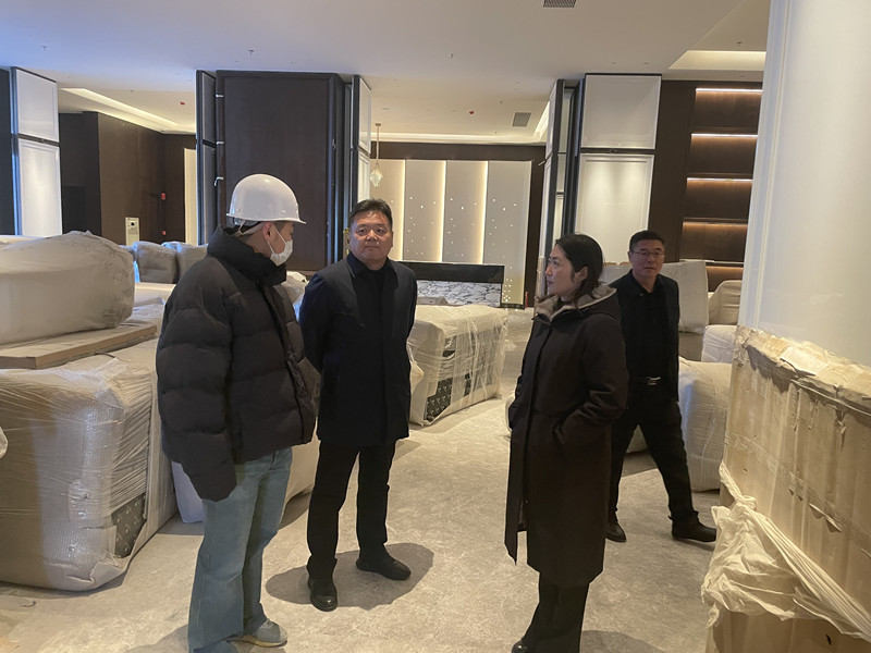一行深入项目现场,详细查看了酒店内饰装修、配套设施工程进度等情况。